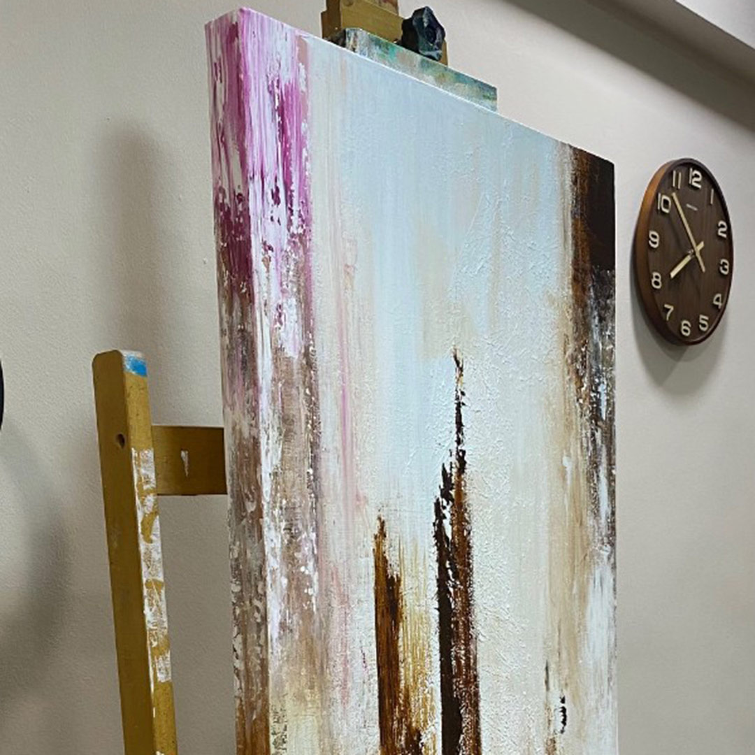 Crafted with earthy colours, “Metamorphosis 8” exudes grounding, comfort, and serenity. The neutral and soothing hues guide the viewer on an introspective journey, where the unspoken narrative emerges through the subtlety of its textures. The artwork offers an organic experience reminiscent of nature’s ever-changing, textured landscapes.