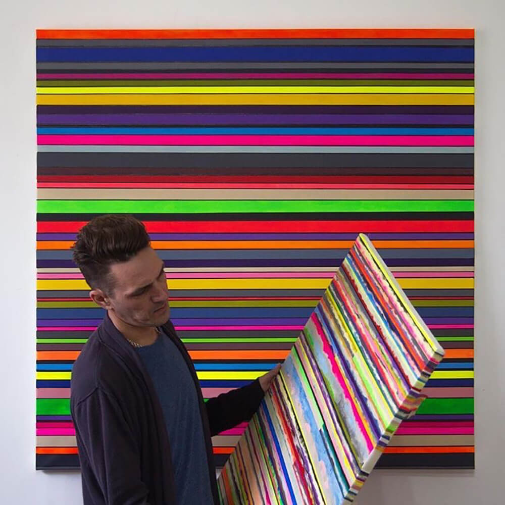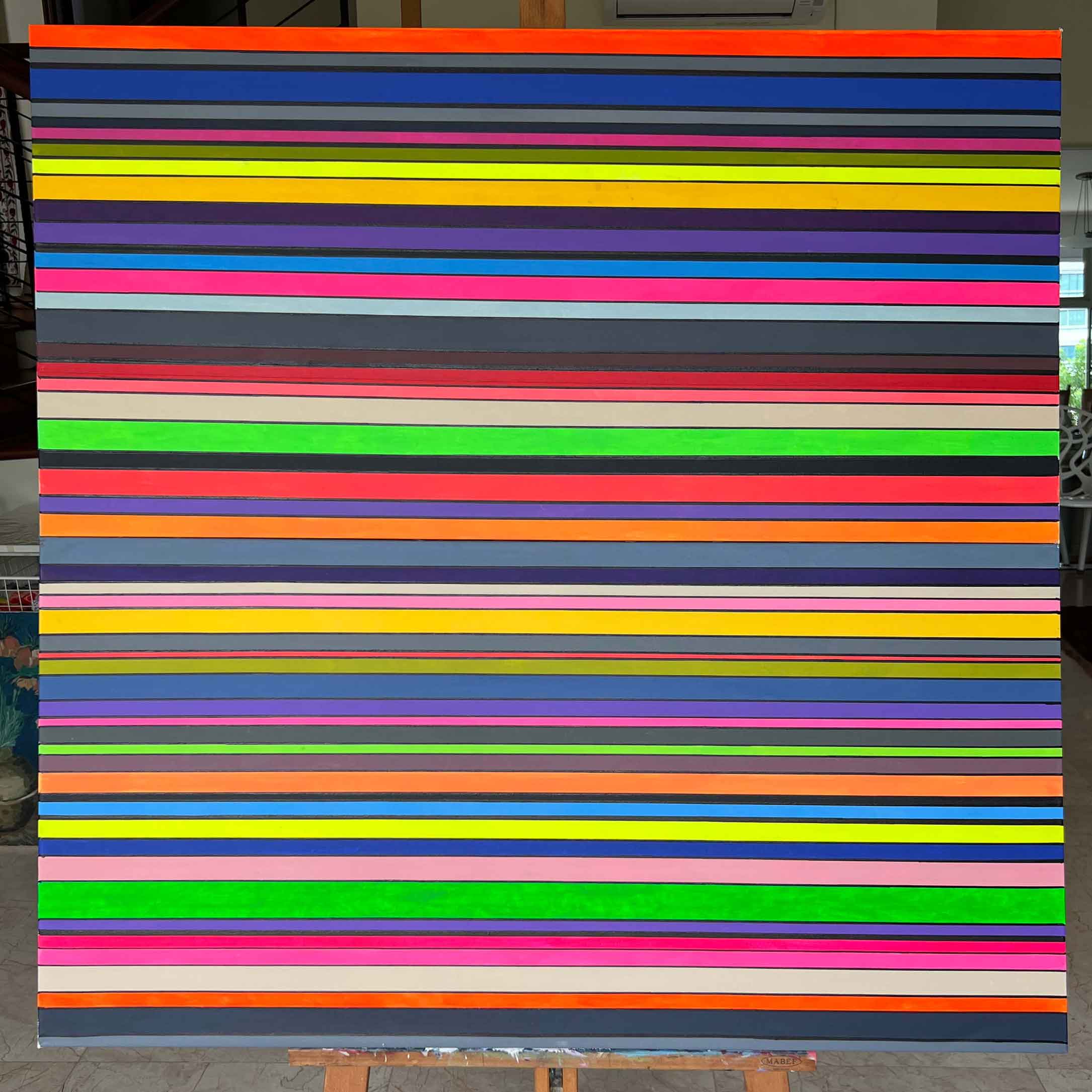 Summer Fragrances is an abstract painting by Vitaly Didenko, created in 2018 using acrylics on two separate canvas panels, each measuring 120*60 cm. The painting features a vibrant collection of colours arranged in straight lines, giving the impression of controlled chaos. The use of bold, ethnic-inspired colour combinations is a hallmark of traditional arts and crafts in Central Asia, and the painting’s resemblance to these styles is unmistakable. Through its depiction of blossoming fields, fragrant gardens, and melons, the canvas vividly captures the essence of summer. The clarity of perception in work makes it versatile, able to fit into various interior design schemes, from the geometry of lines in a strict office to the vivid colours of a cosy bedroom.